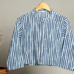 elegance to your wardrobe with this handcrafted block print cotton Designed with intricate floral motifs on a soft beige base, this top is perfect for casual outings, office wear, or ethnic styling. The long sleeves with contrasting red printed cuffs bring a unique charm, blending traditional artistry with modern comfort.
