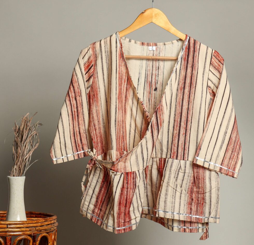 elegance to your wardrobe with this handcrafted block print cotton Designed with intricate floral motifs on a soft beige base, this top is perfect for casual outings, office wear, or ethnic styling. The long sleeves with contrasting red printed cuffs bring a unique charm, blending traditional artistry with modern comfort.