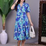 Women’s Blue Abstract Print Cotton Shirt Dress