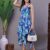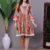 Vibrant, tiered mini-dress featuring an intricate, lace-trimmed V-neckline and tasseled hems on the sleeves and skirt. It offers a flattering, flowy fit perfect for a chic, bohemian style.